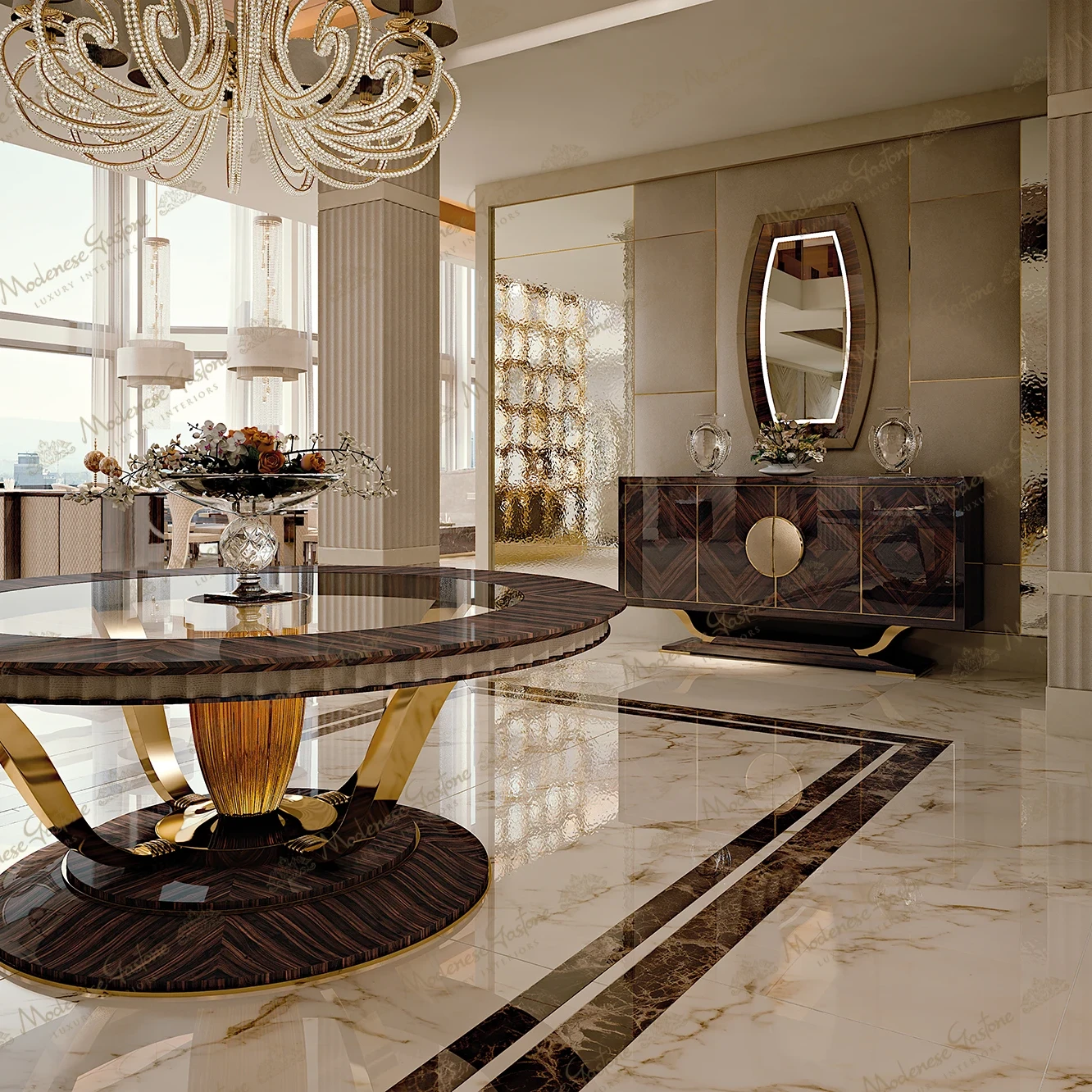 With skilled designers and craftsmen, Modenese Luxury Interiors transforms homes into breathtaking environments. Through extensive research and a comprehensive style guide, we help materialize the home of your dreams. Our designs range from the minimalist to the intricate, marked by unparalleled attention to detail. Every aspect of the design is thoughtfully examined, creating spaces filled with delightful surprises. Our adept design approach, combined with profound expertise in furniture design, enables the creation of royal furniture pieces, celebrated as masterpieces worldwide. The Modenese Luxury Interiors team crafts high-quality furniture items, turning them into meaningful elements of decor.
