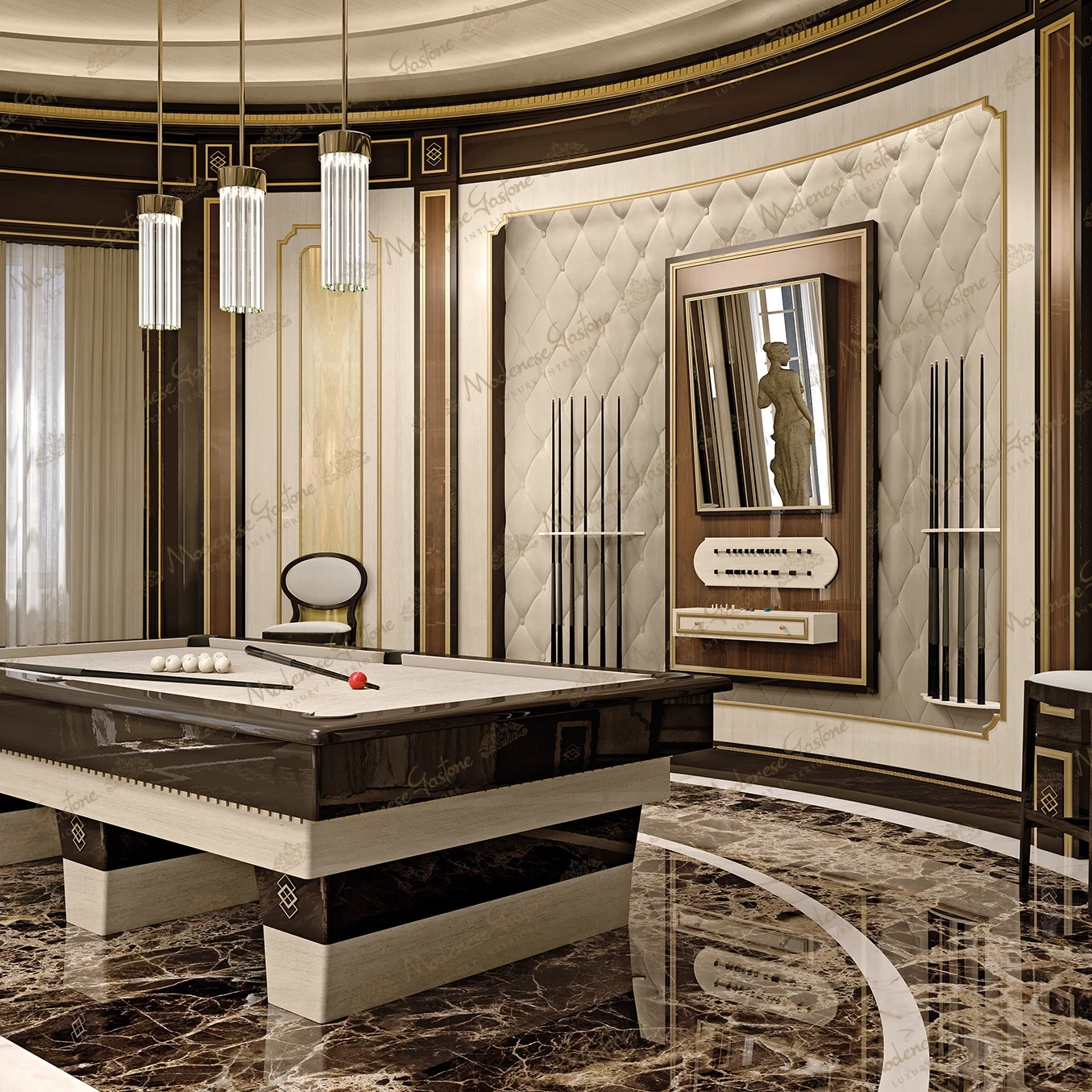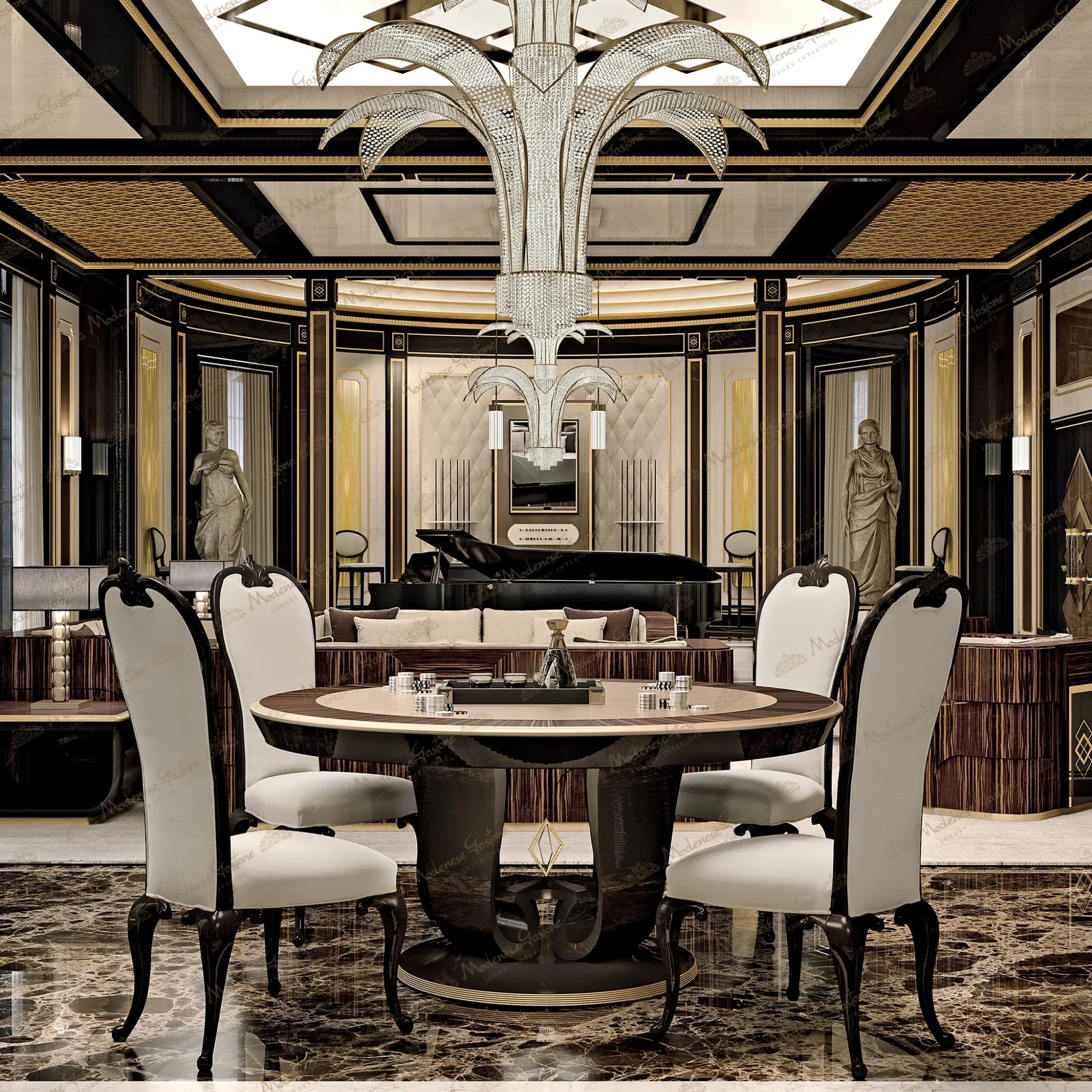Our team of highly skilled professionals combines innovative thinking with extensive experience to design projects that not only meet technical specifications but also boast a unique identity, becoming emblematic of luxury architecture in Tashkent. In Tashkent, where the fusion of cultures creates a rich tapestry of architectural styles, Modenese Luxury Interiors excels in designing classic villas that reflect both the city’s historical grandeur and the personal tastes of their occupants. Our design philosophy is rooted in the harmonious blending of textures, colors, and classical elements, alongside a graceful incorporation of both classical and modern motifs to achieve intelligent comfort. Special attention is paid to the design of the entrance hall, setting the tone for a welcoming atmosphere that combines respectability with the warmth of a holiday retreat. Utilizing state-of-the-art stone cutting technology, we craft intricate marble floors and complement them with elegant mirror panels, gilded ornaments, and matte cream-colored stucco to visually expand the space and enhance its luxurious feel.